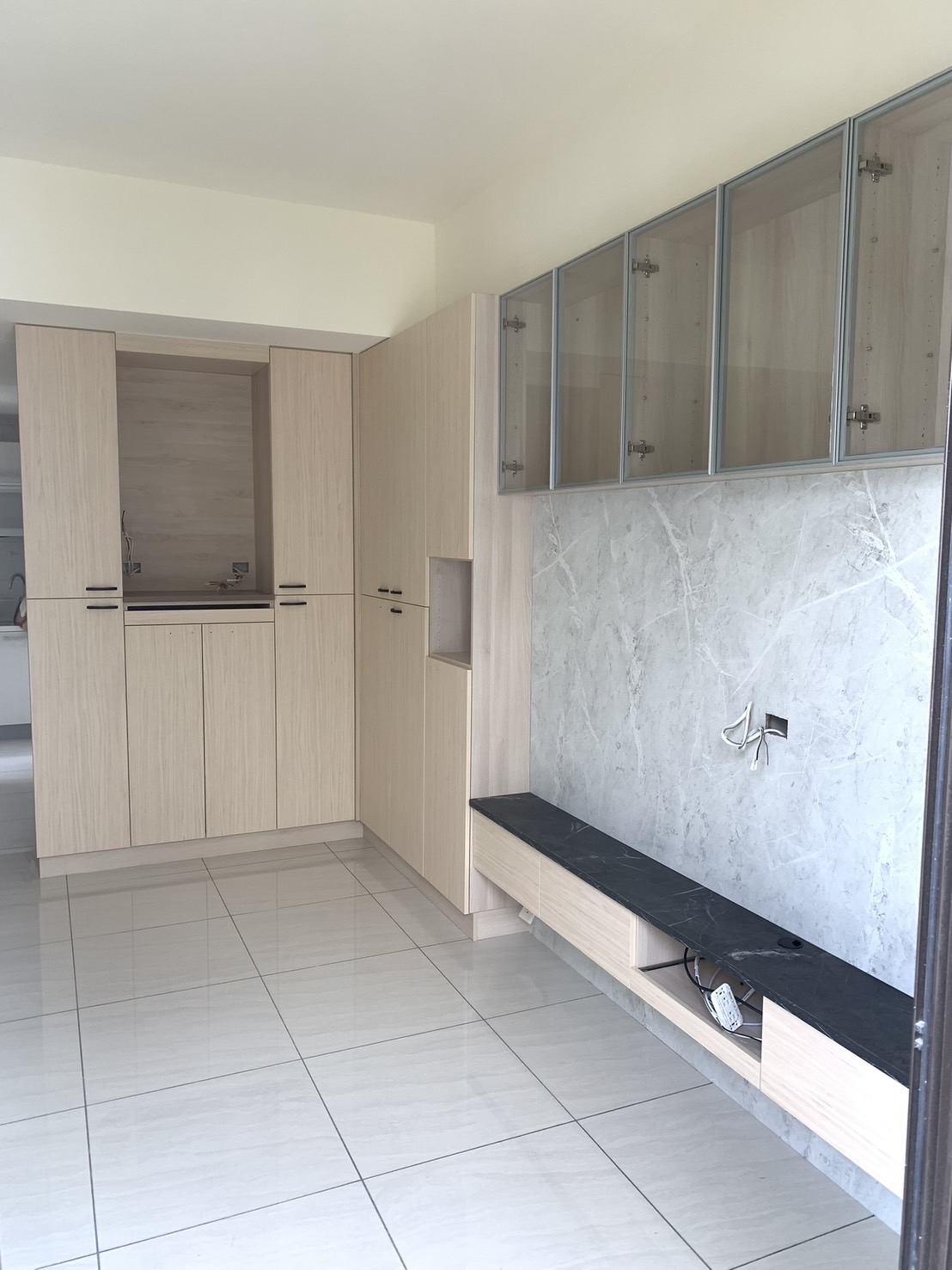 本案以多功能使用為核心,將系統櫃與書桌結合,滿足收納、工作與日常使用需求,櫃體配置依照實際操作順序安排,使物品取用更加直覺,避免空間被單一功能侷限,提升整體使用彈性。
